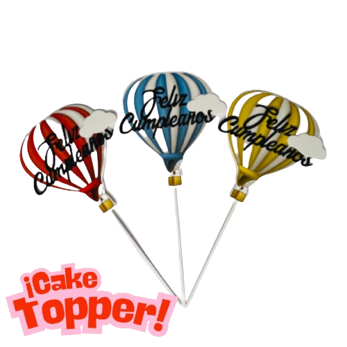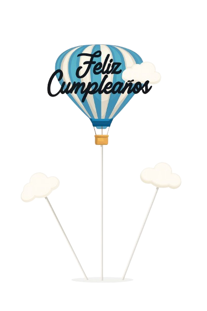 Cake Topper de Feliz Cumpleaños Globo Aerostático con Nubes